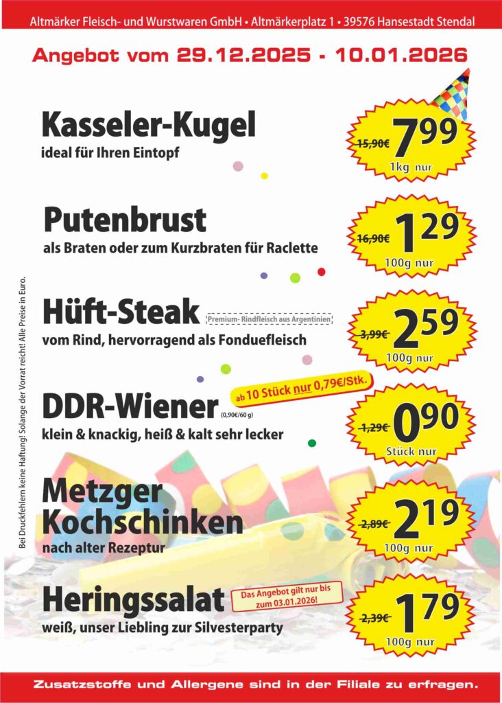 Denken Sie jetzt schon an Weihnachten und bestellen Sie Ihr frisches Fleisch in einer unser Altmärker-Filiale vor!