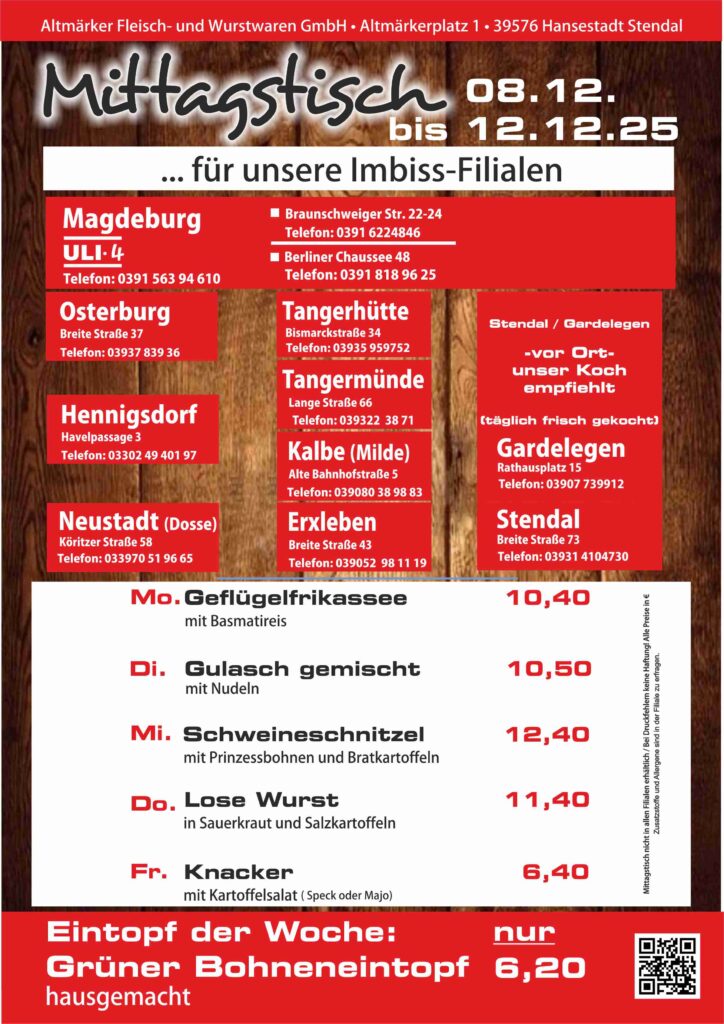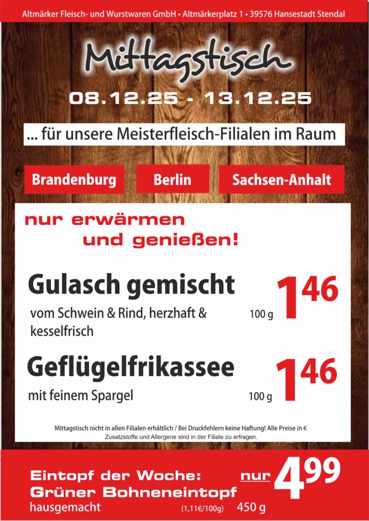 Das Mittagsangebot vom 08. Dezember bis zum 13. Dezember 2025: