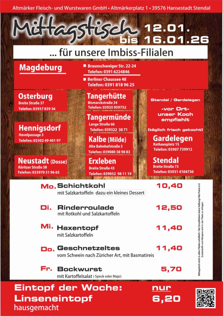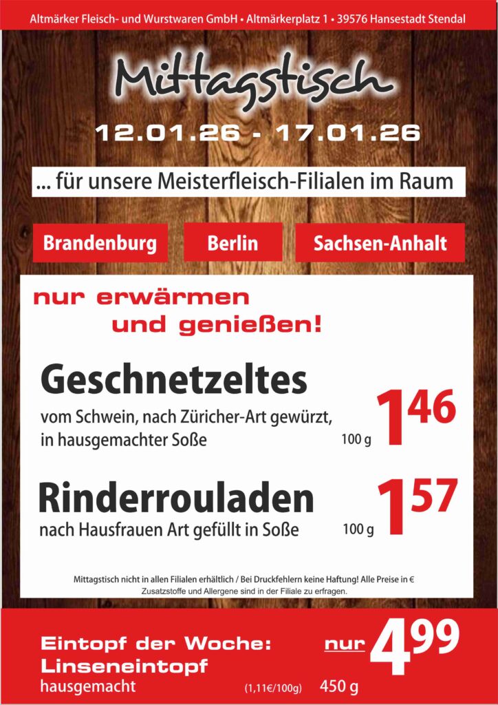 Das Mittagsangebot vom 12. Januar bis zum 17. Januar 2026: