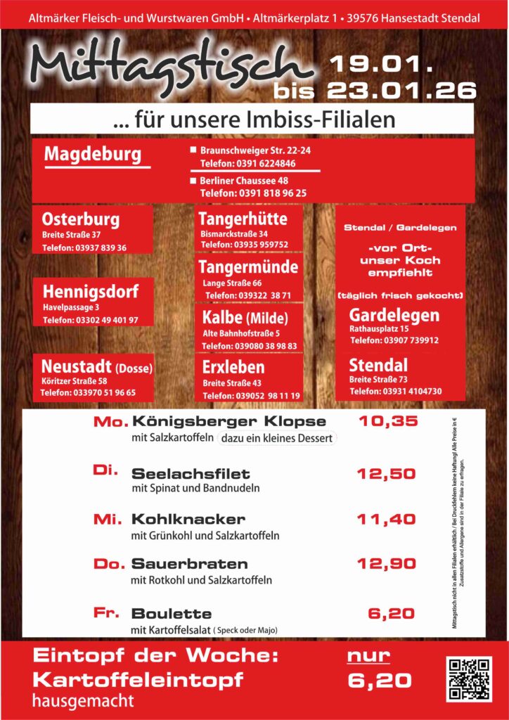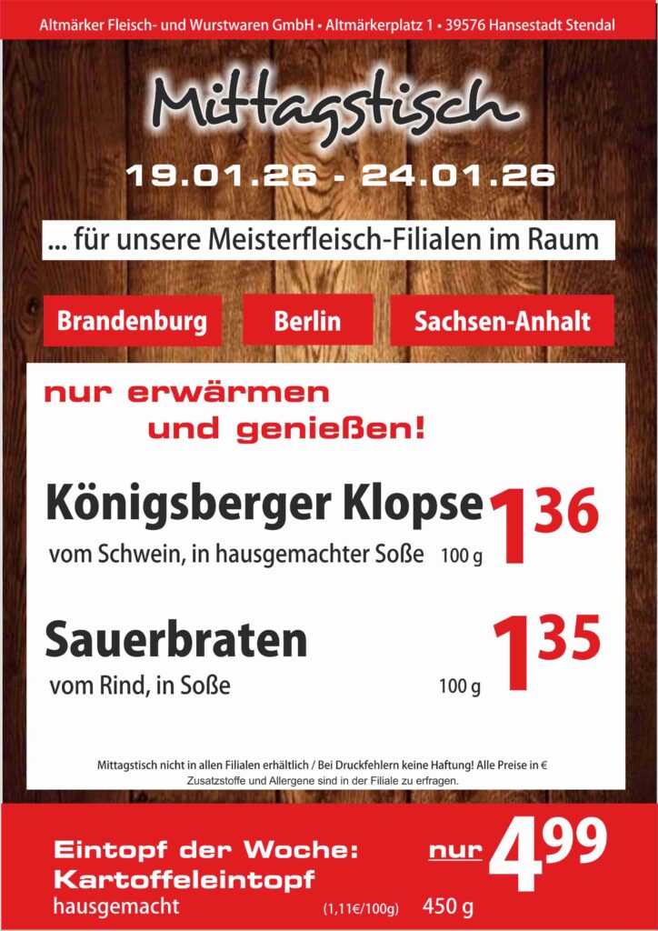 Das Mittagsangebot vom 19. Januar bis zum 24. Januar 2026: